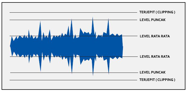 Gambar 2: Level rata rata dan level puncak didalam sebuah sinyal musik.