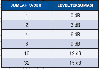 Kalau ada sinyal yang sama masuk kedalam beberapa fader (contohnya suara hum), sinyal meningkat 6 dB untuk setiap penggandaan jumlah fader. Jika kalian mendapati tangkapan suara hum yang sama di setiap saluran ( jarang terjadi ), sebuah campuran 16 saluran akan mendorong suara hum sebanyak 24 dB! Ini adalah salah satu alasan untuk melakukan mute atau menurunkan fader yang tidak terpakai.