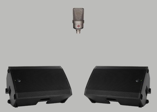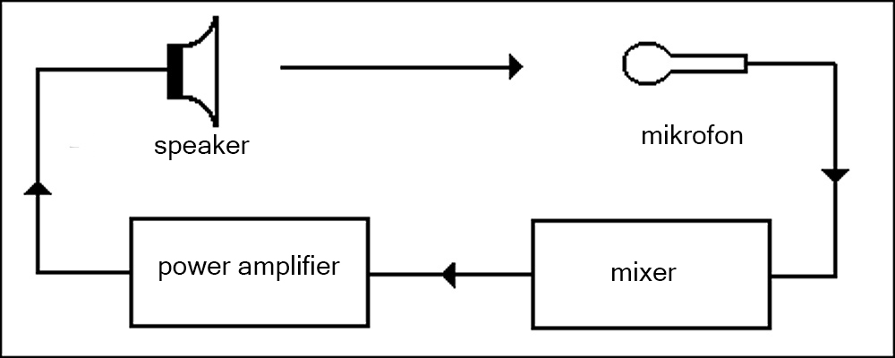 Sistem pengeras suara harus diletakkan didepan pemain musik untuk mengeliminasi “jalur speaker ke mikrofon,” yang adalah penyebab utama masalah feedback. (suara yang keluar dari speaker lalu ditangkap oleh mikrofon, yang lalu terkirim ke sistem dan teramplifikasi lagi dan lagi, dan sistem terus “mengumpan balik” lewat apa yang disebut sebagai sebuah “feedback loop,”).