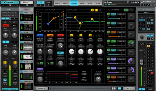 Saluran strip dari mixer memiliki fitur standar seperti EQ, penyaringan dan pemrosesan dinamika yg disediakan oleh plug in Waves eMo plugins. Terdiri dari eMo D5 Dynamic, eMo F2 Filter dan eMo Q4 Equalizer. Kesemua plug in eMo dirancang untuk menyalurkan kejernihan suara dan efisiensi dalam lingkup penggunaan live.