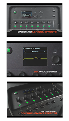 vPara operator sound system pada berbagai level pengalaman akan dapat menyetel suara yang bagus dengan cepat menggunakan sekumpulan prosesor digital dari dbx dan Lexicon serta 8 buah pra setting pabrikan yang ada didalam JBL PRX ONE. Efek efek yang ada didalamnya termasuk reverb, penyelarasan EQ 8 pita, delay, kompresi, pembatas, perunduk, echo, sub synth dan teknologi dbx DriveRack Inside, dan sudah termasuk fungsi peredam umpan balik feedback AFS Pro Automatic Feedback Suppression ; kontrol tiga tingkat Triple Tier DSP menyediakan manajemen pengaturan berdasarkan level pengalaman dan pengetahuan pengguna.