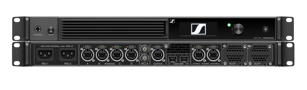 Lebih lanjut, ia mempunyai dua buah catu daya, koneksi jaringan audio Dante primer utama dan sekunder cadangan, dua buah sisipan untuk koneksi redundan MADI (optikal atau BNC) dan empat lubang colokan antena, yang tidak hanya memungkinkan redundansi kinerja, namun juga untuk cakupan zona antena tersinkronisasi yang lebih panjang atau kapasitas sistem yang lebih tinggi dengan menggunakan rentang frekuensi tambahan. Lubang port cascade pada unit dapat diaktifkan dengan perilisan firmware di masa depan. Perlu diingat bahwa tidak ada komponen RF didalam perangkat Base Station, jadi tidak akan ada gangguan dengan perlengkapan nirkabel wireless lainnya didalam rak audio.