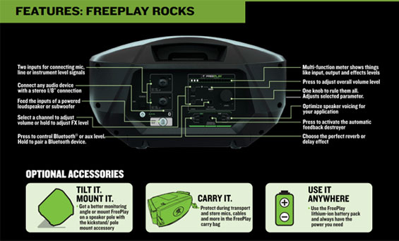 “Mackie FreePlay sempurna untuk semua orang,mulai dari musisi ,penyanyi , vokalis / penulis lagu ,pengajar , pembicara publik dan penikmat musik,” ujar Matt Redmon, manajer senior dari Mackie . “Speaker FreePlay memberikan solusi yang luar biasa didalam sebuah paket sound system yang inovatif dan mudah digunakan.”